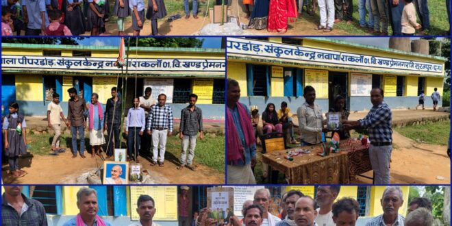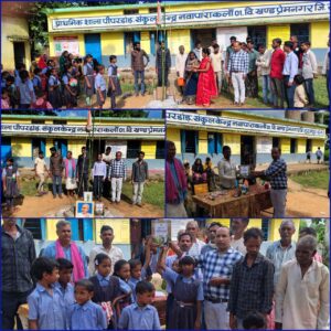 शासकीय प्राथमिक शाला पीपर डांड में 79 वॉं स्वतंत्रता दिवस राष्ट्रीय उत्सव धूमधाम से मनाया गया । जिसमें नई शिक्षा नीति 2020 के तहत मोर स्कूल मोर इतिहास का विमोचन शाला प्रबंधन समिति के अध्यक्ष एवं पंच सरपंच के द्वारा हुआ जिसमें विद्यालय स्थापना वर्ष 2005 आज़ पर्यन्त तक विद्यालय का इतिहास को जानकर सभी ग्राम वासी बहुत प्रभावित हुए इतिहास लेखन कर्ता नव पदस्थ शिक्षक राजेन्द्र जायसवाल की अत्यधिक प्रशंसा की। राजेन्द्र जायसवाल ने सभी का हृदय से आभार व्यक्त किया एवं 15 अगस्त 1947 को हमारा देश कैसे आज़ाद हुआ इस पर प्रकाश डाल कर बताया गया। प्रधान पाठक किशुन राम मराबी ने सभी अतिथियों को 79 वॉं स्वतन्त्रता दिवस की शुभकामनाएं दी पंच राज कुमार, श्री मती राजकुमारी , शाला प्रबंधन समिति अध्यक्ष श्री नारायण सिंह सदस्य अमर साय तेज राम सरोज निरंजन सिंह इत्यादि एवं वरिष्ठ ग्राम वासी नवयुवक, महिला शक्ति इत्यादि उपस्थित रहे।